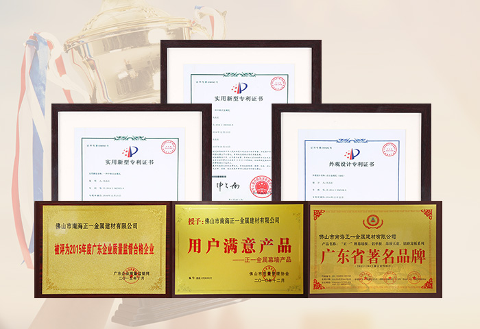 通過ISO9001認(rèn)證,國家建筑材料測(cè)試中心和中國有色金屬華南產(chǎn)品質(zhì)量監(jiān)督檢驗(yàn)中心合格檢測(cè),符合美國建筑制造商協(xié)會(huì)AAMA2605-98涂層標(biāo)準(zhǔn),被國家建設(shè)部認(rèn)定為建筑鋁合金外墻板、鋁合金天花板定點(diǎn)生產(chǎn)企業(yè)。