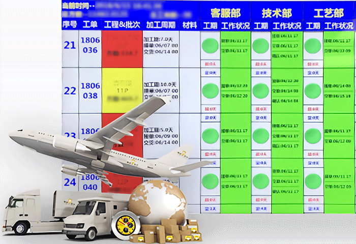 正一金屬科技為實(shí)現(xiàn)100%按期交付,自主開發(fā)交期監(jiān)管APP軟件,實(shí)時(shí)掌握訂單信息,智能遠(yuǎn)程生產(chǎn)、物流進(jìn)度及狀況監(jiān)控管理,結(jié)合成熟的物流管理體系,確保能在約定交期之前,完成產(chǎn)品交付。